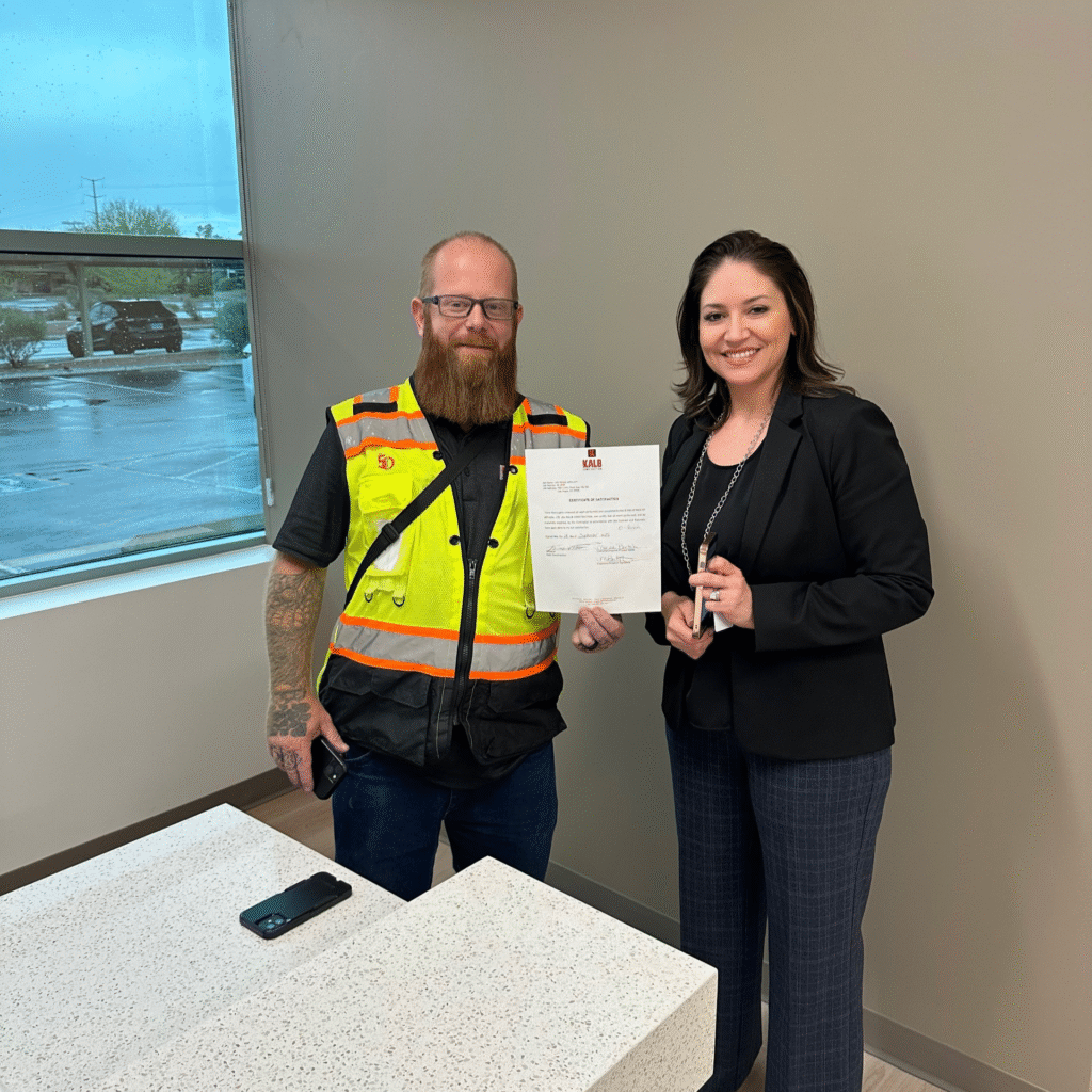 Superintendent Tom Morrisette and LV Urology CEO Marian Bertola following the Certificate of Occupancy approval for the Fire Mesa location.