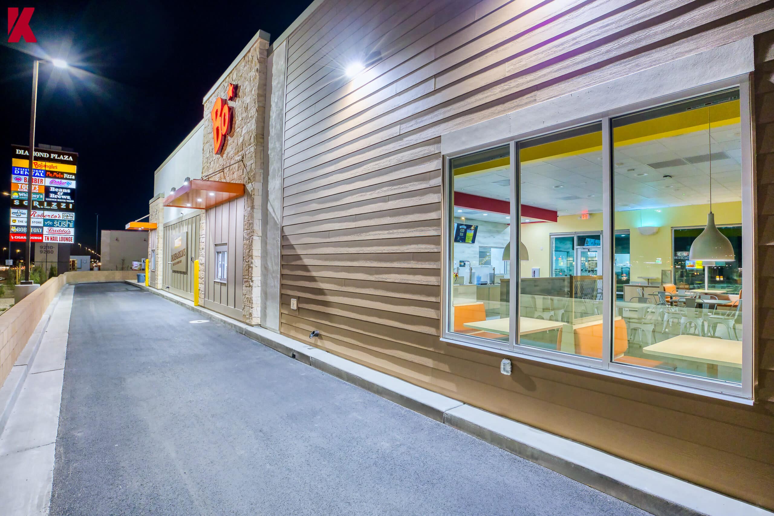 Kalb Construction completed the first-ever Bojangles location west of the Mississippi, delivering a flagship ground-up build in the heart of Southwest Las Vegas. Designed to launch the brand’s presence in a new market, the project was completed on a fast-track schedule and built to support high-volume operations from day one.
