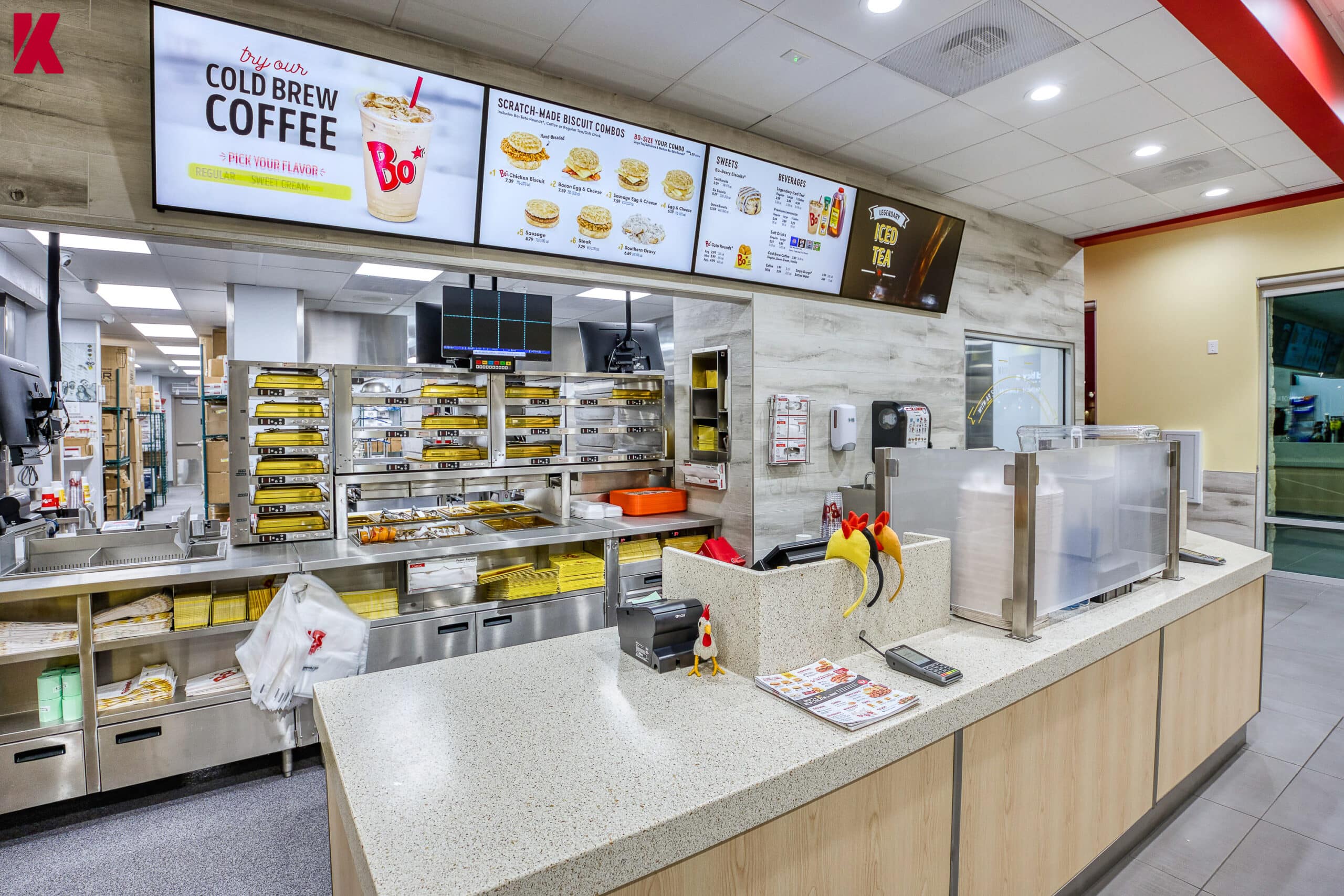 As the client’s flagship location in the western U.S., the project demanded precision execution under brand oversight. Kalb worked closely with the Bojangles team to ensure the design, finishes, and functionality aligned with both corporate standards and local market needs.